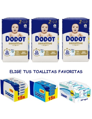 Pack de Pañales Dodot Sensitive Talla 2 (522 pañales) y caja de toallitas