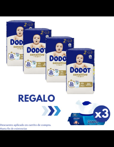 Pack de pañales Dodot 4x Cajas (696uds)Talla 2 Sensitive - Comodidad y Protección