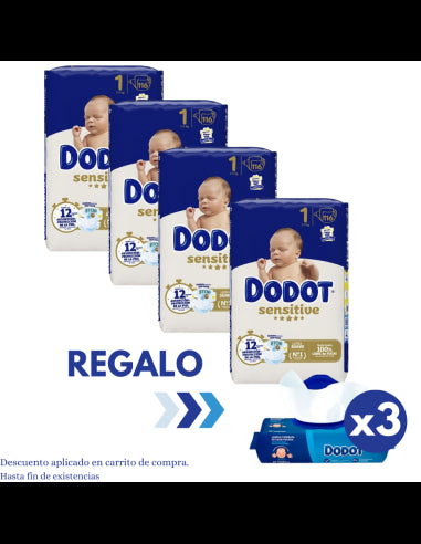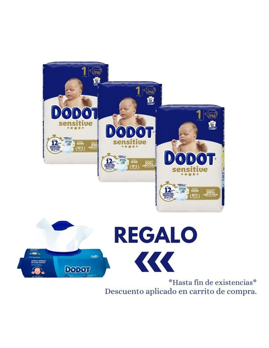 Pack Dodot talla 1 Sensitive con 348 uds en 3 cajas