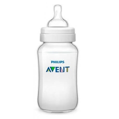 Biberón clásico de Avent, clínicamente probado, reduce los cólicos. Fácil de limpiar. Mientras el bebé se alimenta, la exclusiva válvula de la tetina se flexiona para permitir que el aire entre en el biberón en lugar de en la barriguita del bebé.