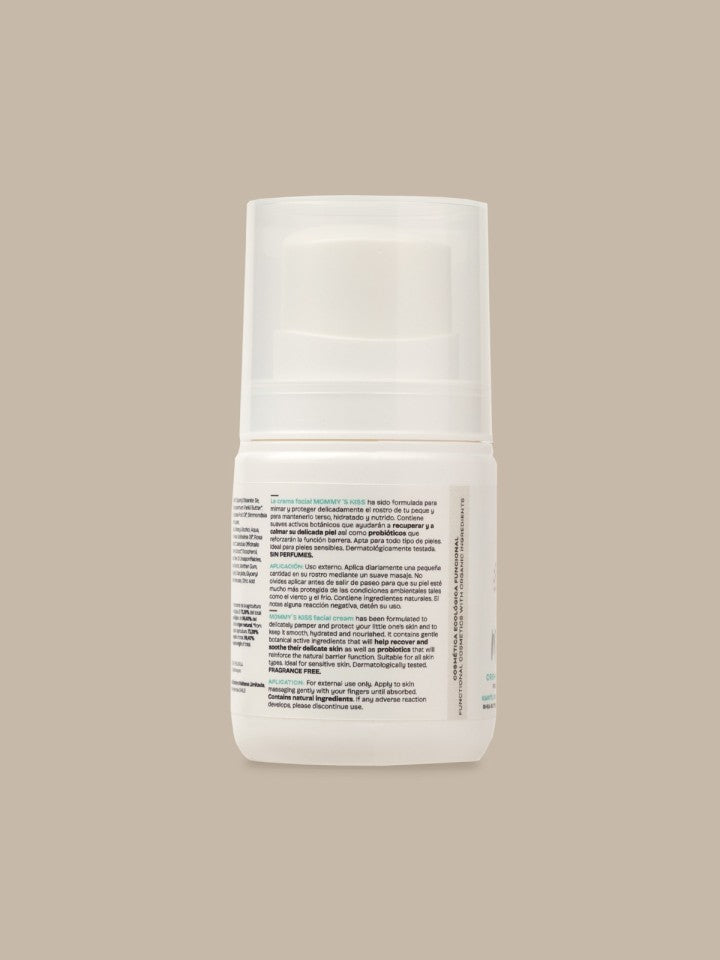 Esta crema facial es perfecta para proteger y cuidar la piel de tu pequeño. Con ingredientes naturales y suaves, es ideal para pieles sensibles y normales. La crema facial MOMMY 'S KISS ha sido formulada para mimar y proteger delicadamente el rostro de tu peque y para mantenerlo terso, hidratado y nutrido. Contiene suaves activos botánicos que ayudarán a recuperar y a calmar su delicada piel así como probióticos que reforzarán la función barrera.