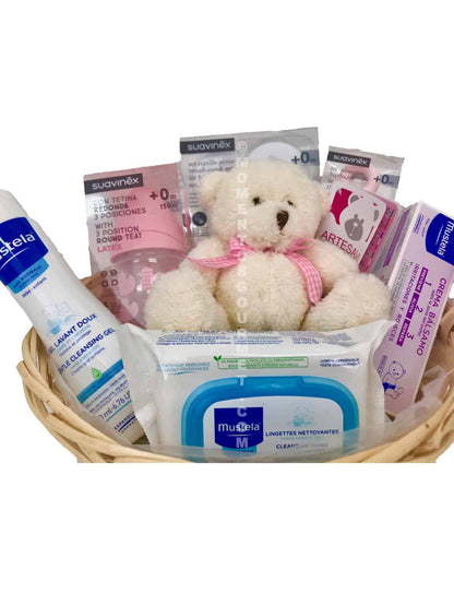 Canastilla bebé Suavinex Mustela con peluche bebé
