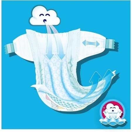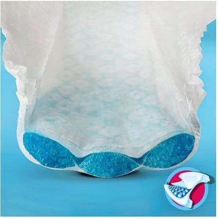 El pipí se distribuye rápida y eficazmente sobre una amplia área del pañal.