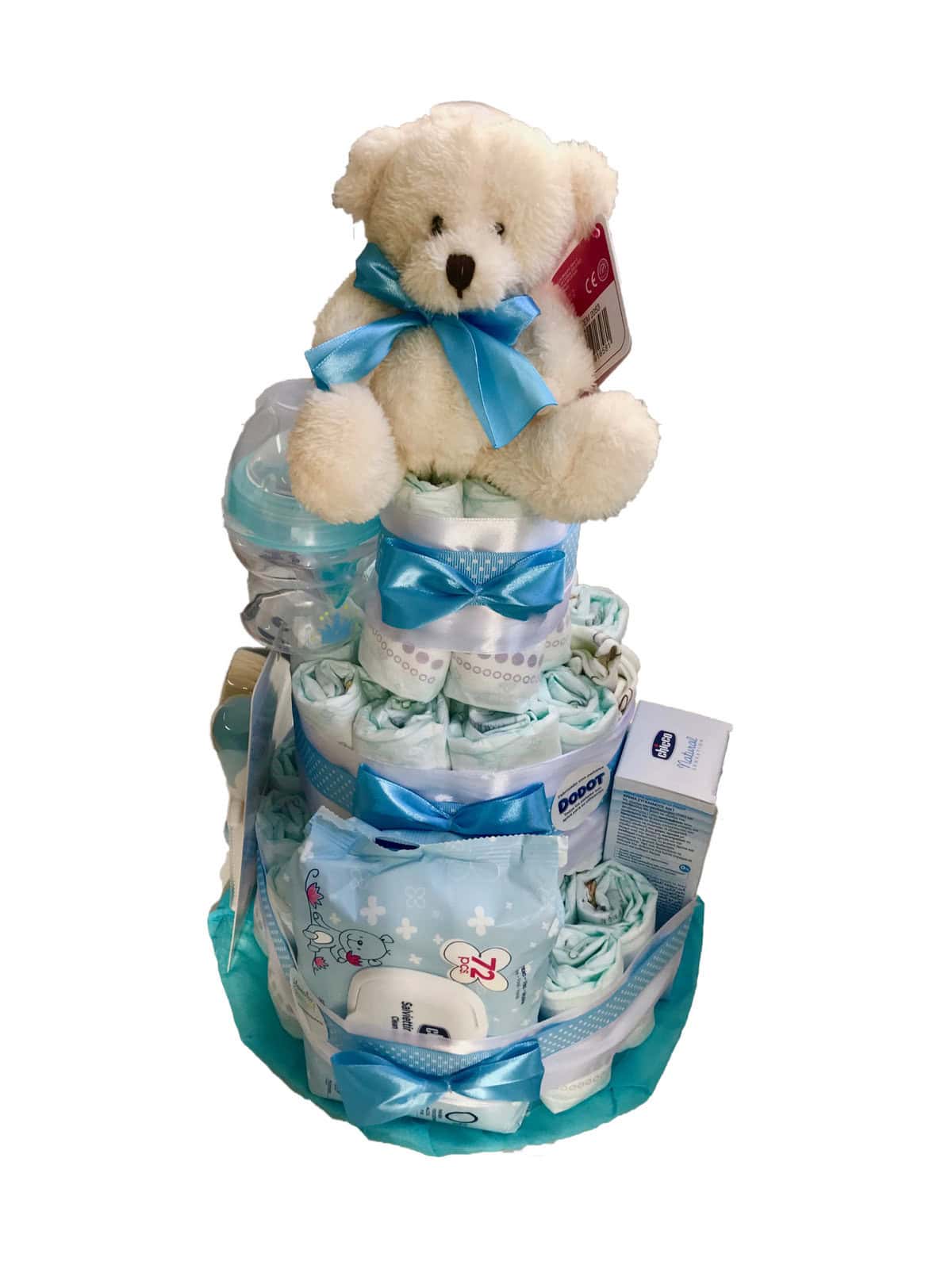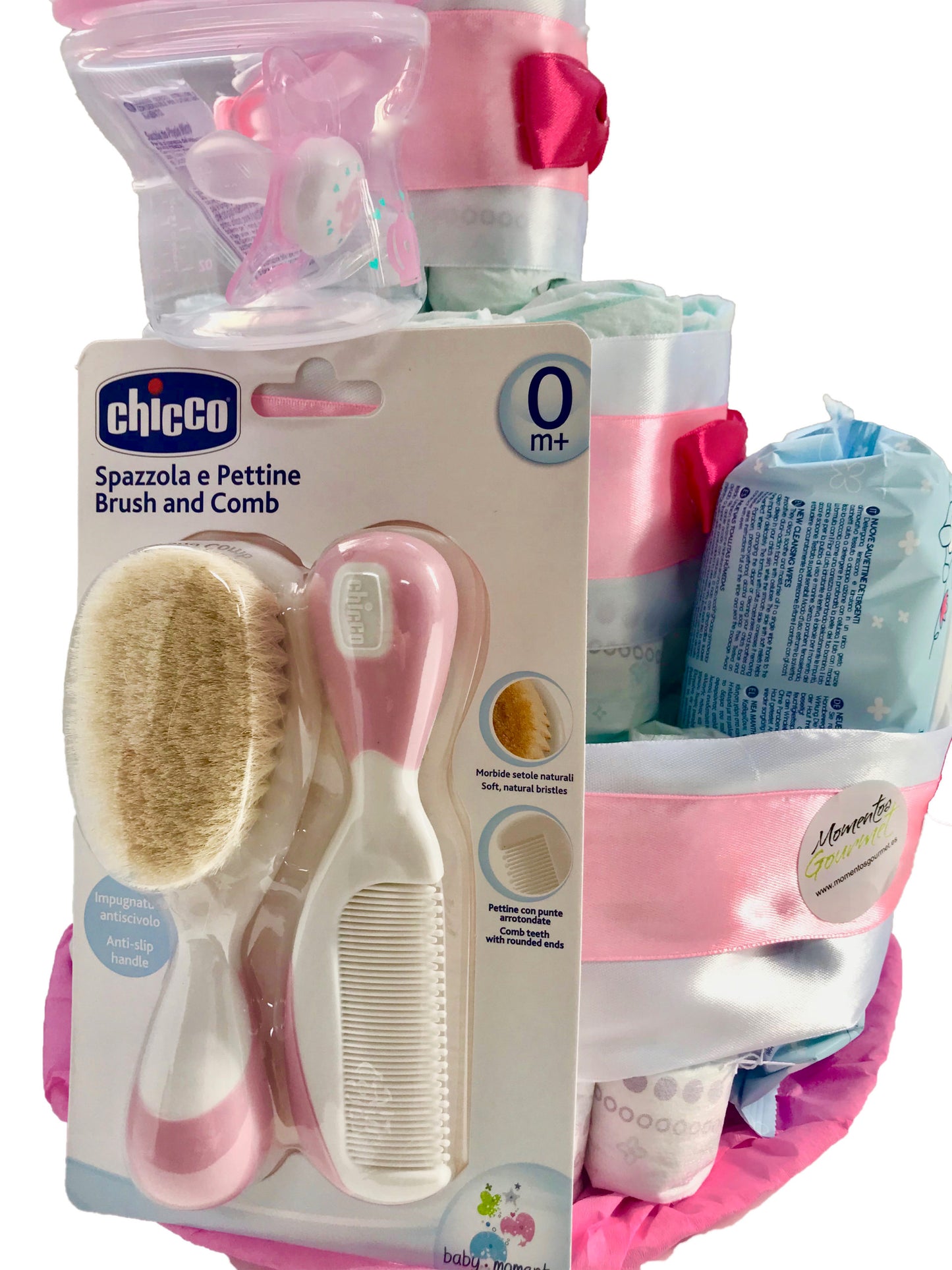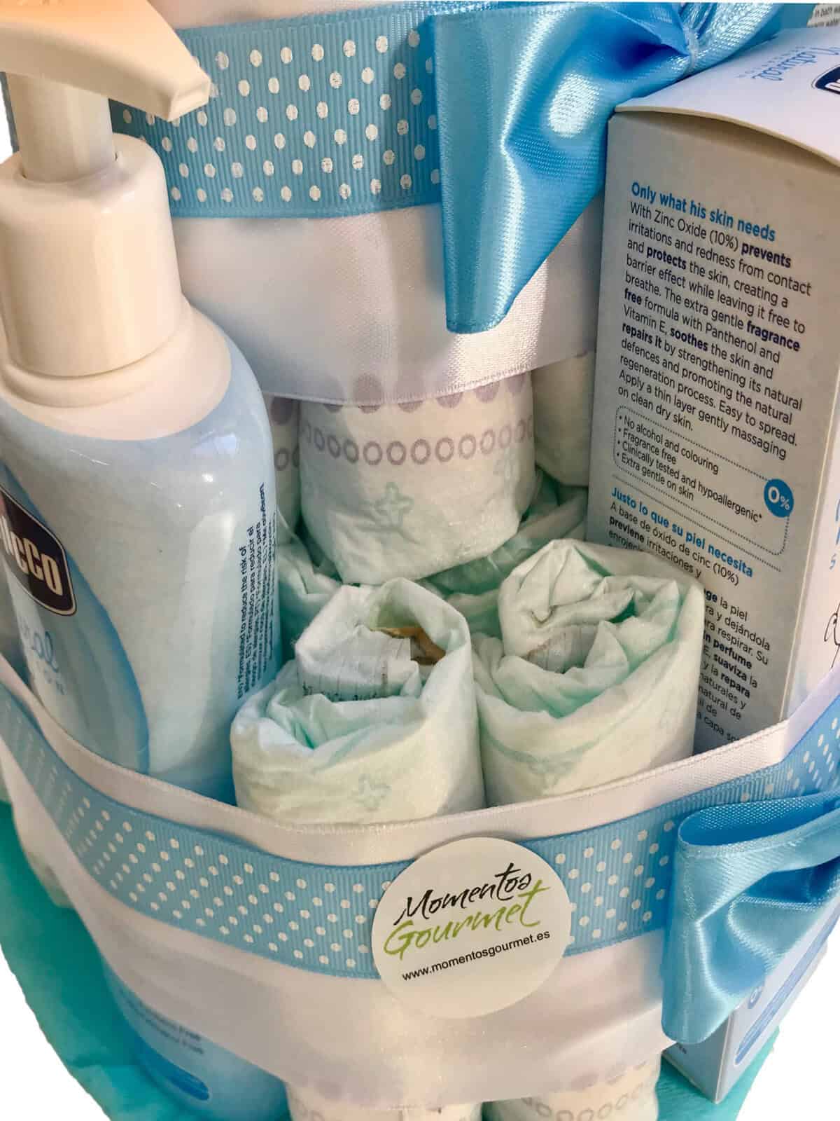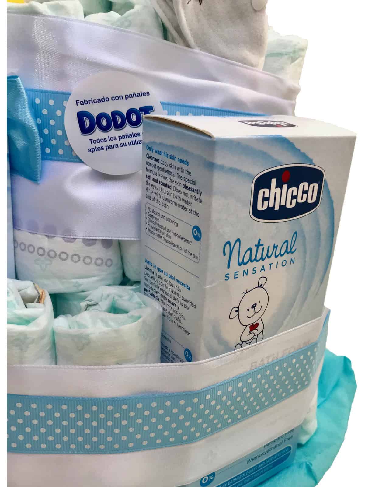 La Tarta de pañales complementos CHICCO es un regalo para bebés muy original y práctico que todos los padres agradecerán .