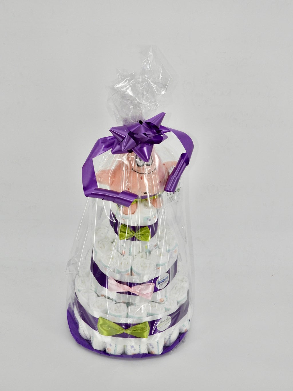 Puedes elegir entre modelos que contienen entre 50 y 115 pañales, según el diseño seleccionado. Además, cada tarta incluye un adorable peluche de aproximadamente 20 cm, perfecto para acompañar al bebé en sus primeros meses.