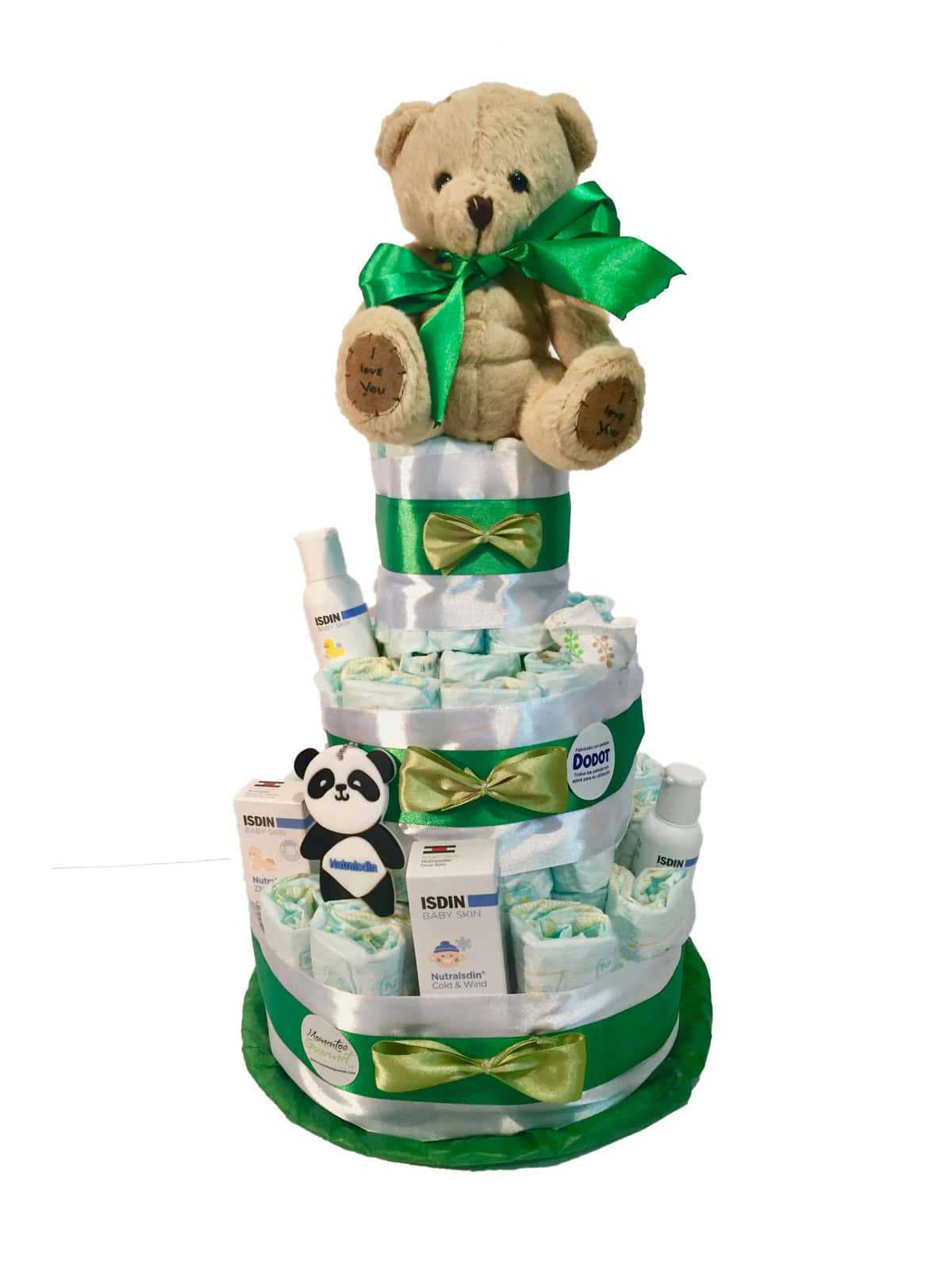 Los productos Nutraisdin de Isdin que completan este pastel pañales, son esenciales para el aseo del bebé y el cambio de pañal. Hemos elegido esta marca por la calidad y variedad de sus productos. Es una empresa con más de 20 años de experiencia en el sector. Seguro que los padres sabrán apreciar este magnífico detalle. Son productos diseñados para proteger, suavizar y evitar la deshidratación de la bebé gracias a la provitamina B5. Sus fórmulas están testadas dermatológicamente y pediátricamente.